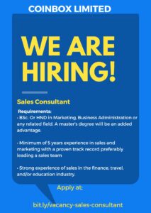 •Minimum of BSc. Or HND in Marketing, Business Administration or any related field. A master’s degree will be an added advantage.